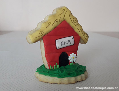 Eu já fiz dois biscoitos 3D aqui no site há muuuuitos anos atrás (veja aqui), é um estilo mais difícil e bem desafiador de biscoito, mas com um resultado sempre surpreendente. Desde que eu comprei esse cortador em formato de casinha de passarinho, fiquei doida de vontade de fazer essa decoração, mas a casinha de passarinho virou uma casinha de cachorro, com nome na plaquinha e uso de várias técnicas diferentes. Fiz um conjuntinho com casinhas em 3D e casinhas simples, segue o passo a passo abaixo: