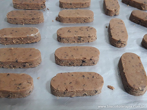 A massa deu ponto fácil usando as medidas exatas da receita. A receita sugere fazer bolinhas com as mãos mas para deixá-los mais uniformes resolvi abrir a massa com o rolo e usar um cortador de biscoitos (deixei eles com 9mm de altura).