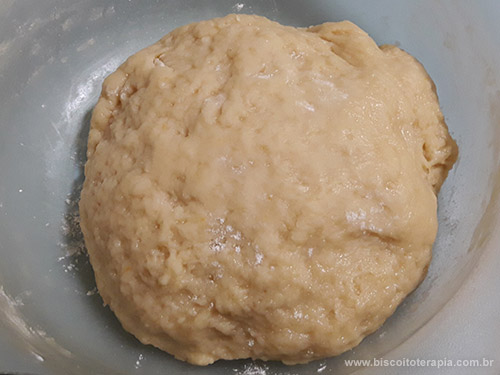 É uma massa bem elástica que deixa um cheiro delicioso na cozinha, mas é também uma massa muito úmida, tive que ficar enfarinhando a mesa e minha mão o tempo todo enquanto modelava as rosquinhas. Uma dica: fazer rosquinhas de massa mais fina do que essas da foto.