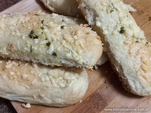 A pastinha de alho que se coloca por cima é uma delícia mas também sugiro aumentar um pouco a quantidade da receita original, pra poder cobrir bem os pães com ela. O pão não é pincelado com gema, ele só recebe essa pastinha por cima, então se não usar a pastinha de alho ele vai ficar bem branquelo. Sugiro também passar a pastinha antes de levar os pães pro forno (e não quando eles estiverem prontos) porque aí o alho não fica tão forte e cru. E mais uma dica: eles crescem bastante, então tem que deixar um bom espaço entre eles na assadeira enquanto estiverem crescendo, senão vão grudar uns nos outros (como na foto aí em cima).